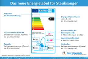 Neben dem Praxistest bietet die Stromsparinitiative ausführliche Informationen zum neuen EU-Energielabel für Staubsauger (mit Infografik). Außerdem werden die wichtigsten Fragen zu Watt und Leistung sowie zur EU-Verordnung für Staubsauger beantwortet.